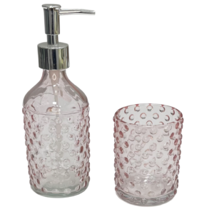 Set de Baño Dispensador de Jabon y Vaso de Vidrio Colores
