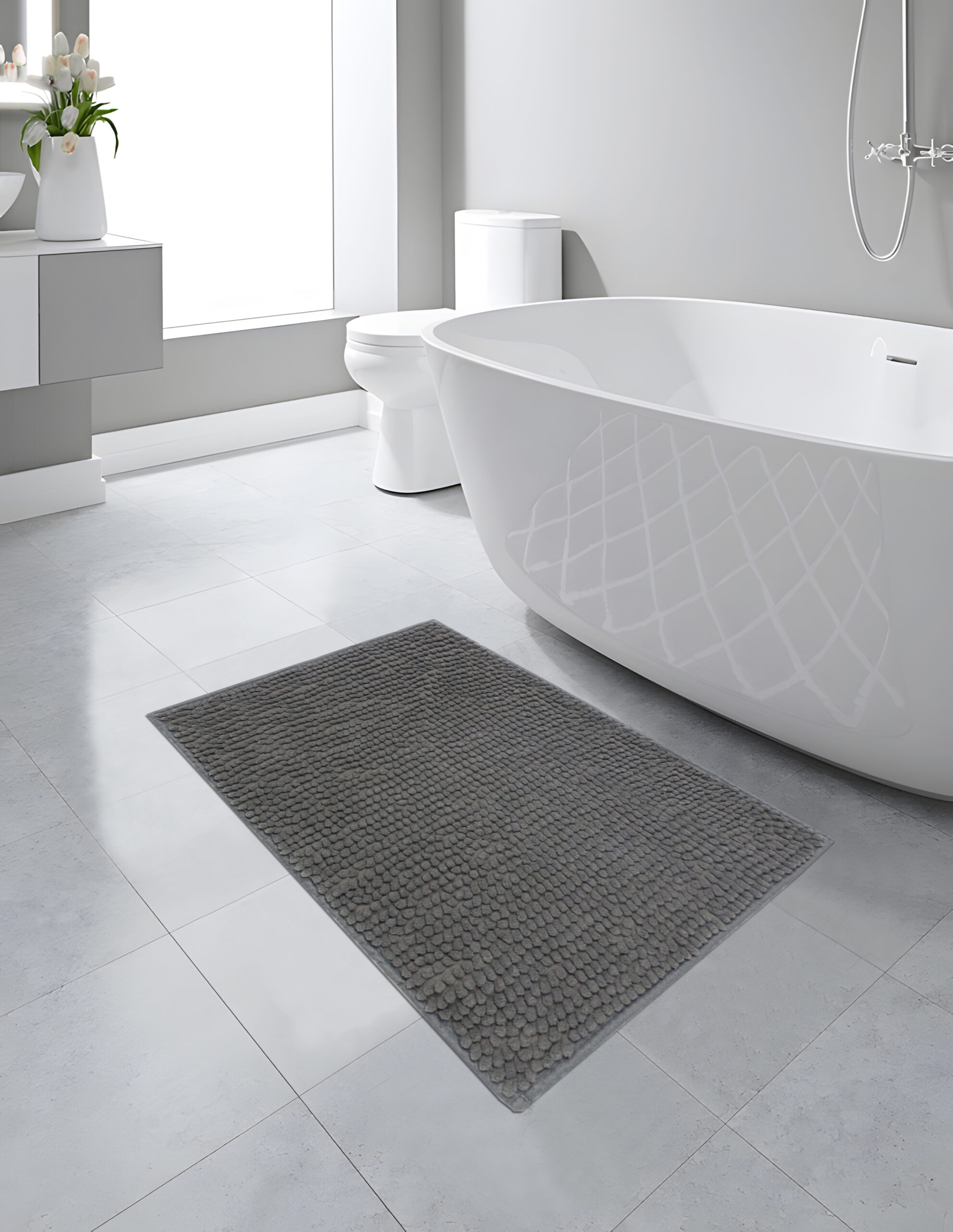Alfombra de baño con cubierta antideslizanteMantén tu baño seguro y elegante con nuestras alfombras antideslizantes. Disponibles en varios colores, cuentan con una cubierta que evita resbalones y añade suavidad al pisar. Ideales para la rutina diaria.