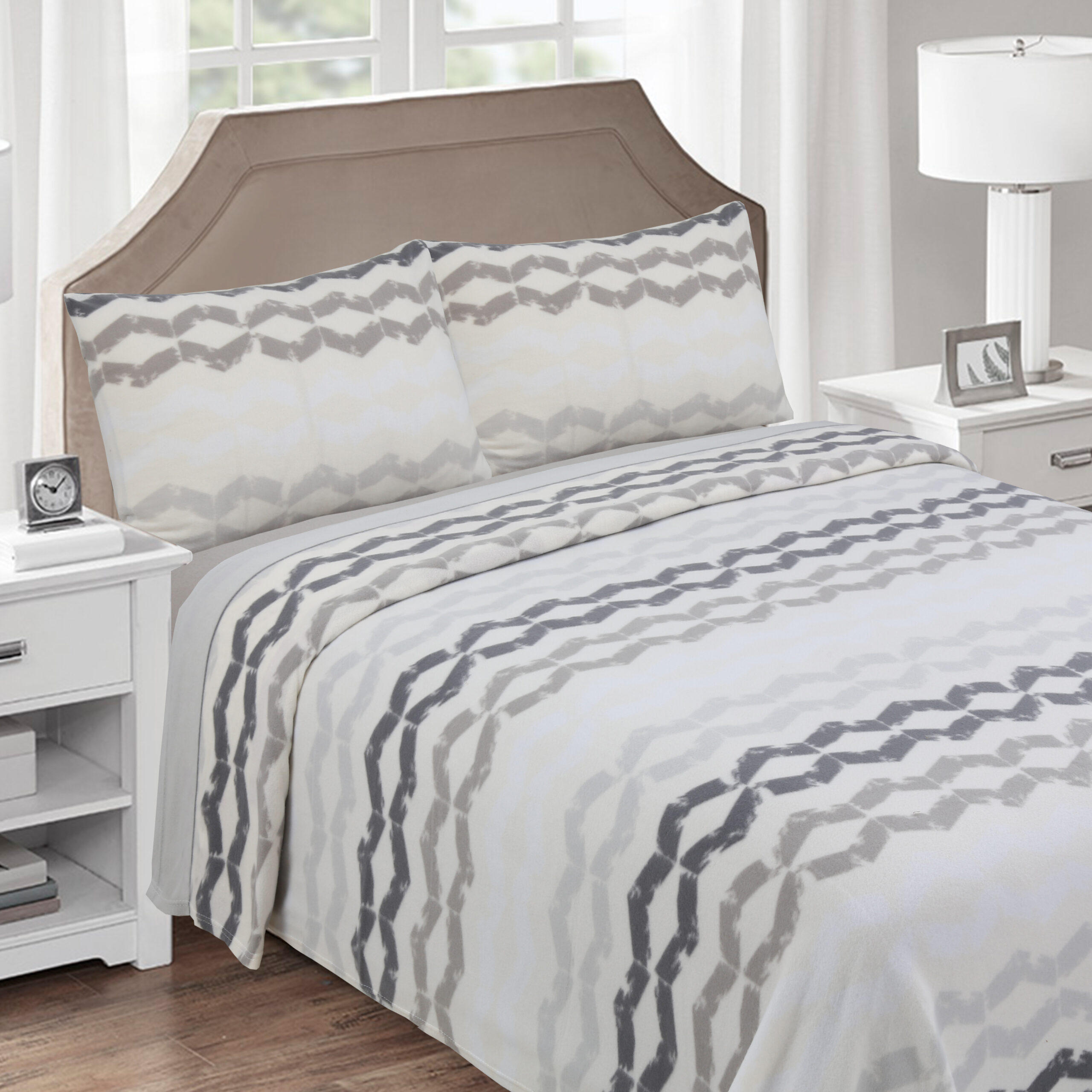 JUEGO SÁBANAS DE POLAR ESTAMPADAS GRIS KING