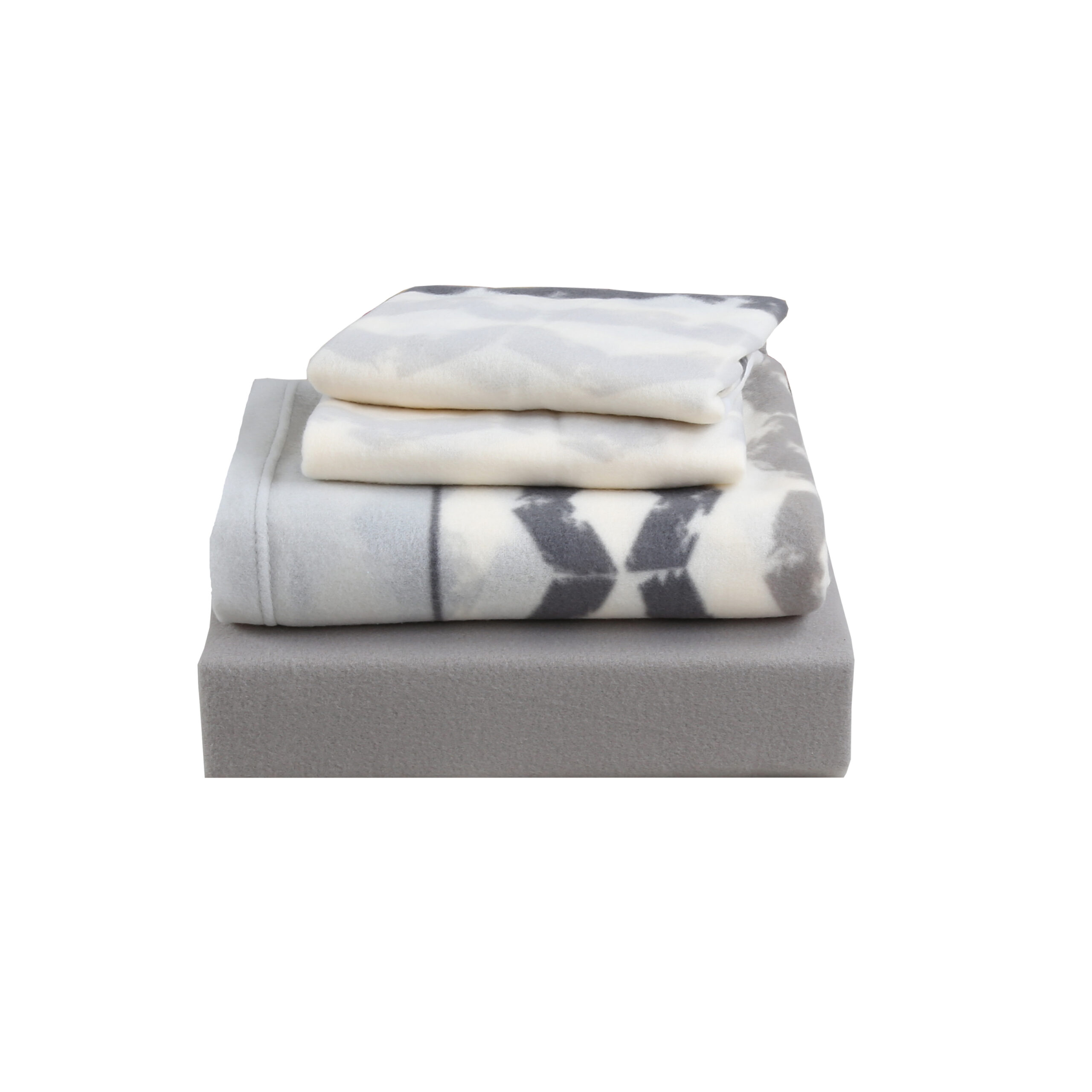 Juego de sábanas de polar estampadas color gris para cama King. Calidez y suavidad para noches de invierno.